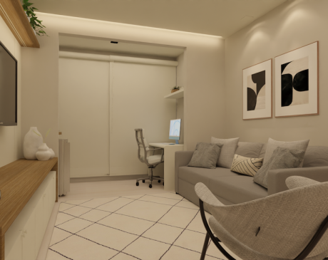 Móveis muito grandes ou pequenos desequilibram o espaço. Portanto, sempre tire as medidas do ambiente e faça um esboço antes de comprar. Assim, você garante circulação confortável e proporção entre os elementos.